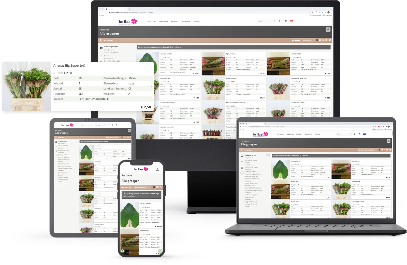 In naher Zukunft werden wir unsere Türen auch für Kunden öffnen, die nicht mit der Auktion verbunden sind. Wir werden unseren Webshop um iDeal-Zahlungen und ein Click & Collect-System erweitern. Auf diese Weise arbeiten wir auf kürzere Wege und einen effizienteren Handel hin.
